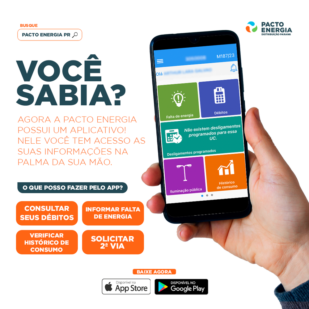 A Pacto Energia Distribuição Paraná sempre comprometida em levar a melhor experiência aos nossos clientes. É com grande satisfação que anunciamos o lançamento do nosso aplicativo exclusivo, projetado para colocar o controle na palma de suas mãos!